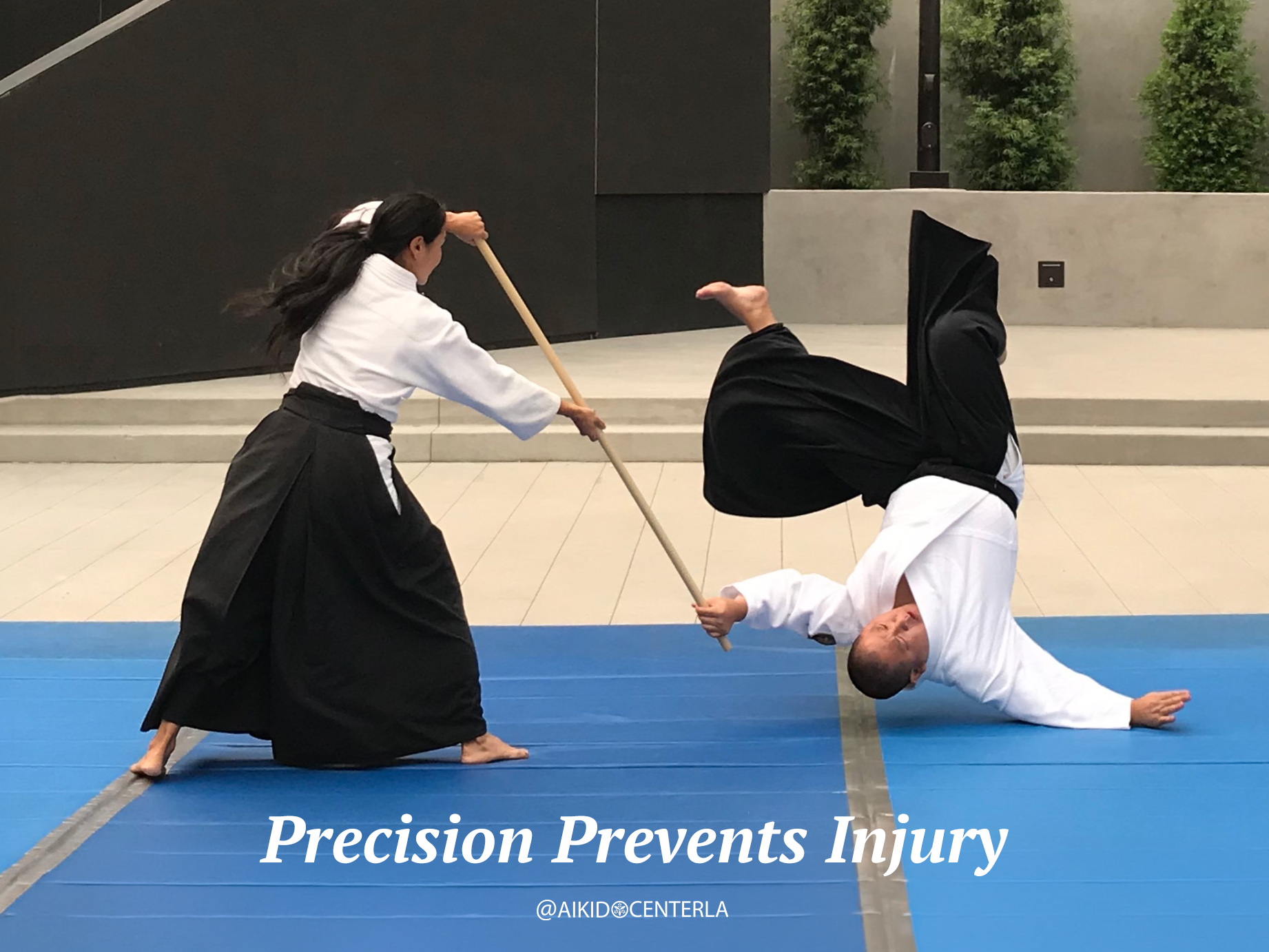In daily life, most of us are solipsistic and in our own worlds fighting our own personal battles. Part of what Aikido training is trying to teach us is to become aware of others. That is why Aikido has to be done with a partner. As we learn to do Aikido to others, we learn a kind of body to body communication through movement. The nage’s movements should be clear so that the uke doesn’t misread them and take the wrong ukemi and get hurt.